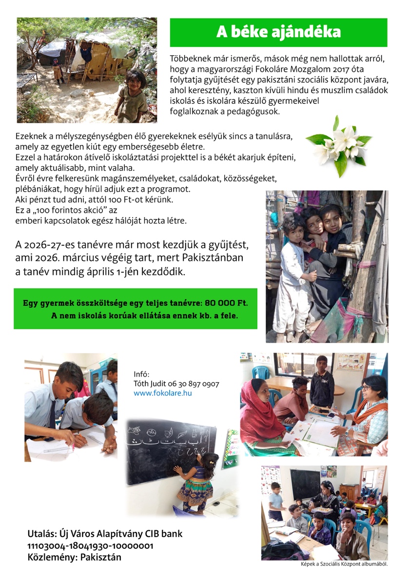 A béke ajándéka Fokoláre Mozgalom Közzétéve 2025. október 17. , endre2025. október 17. A béke ajándéka